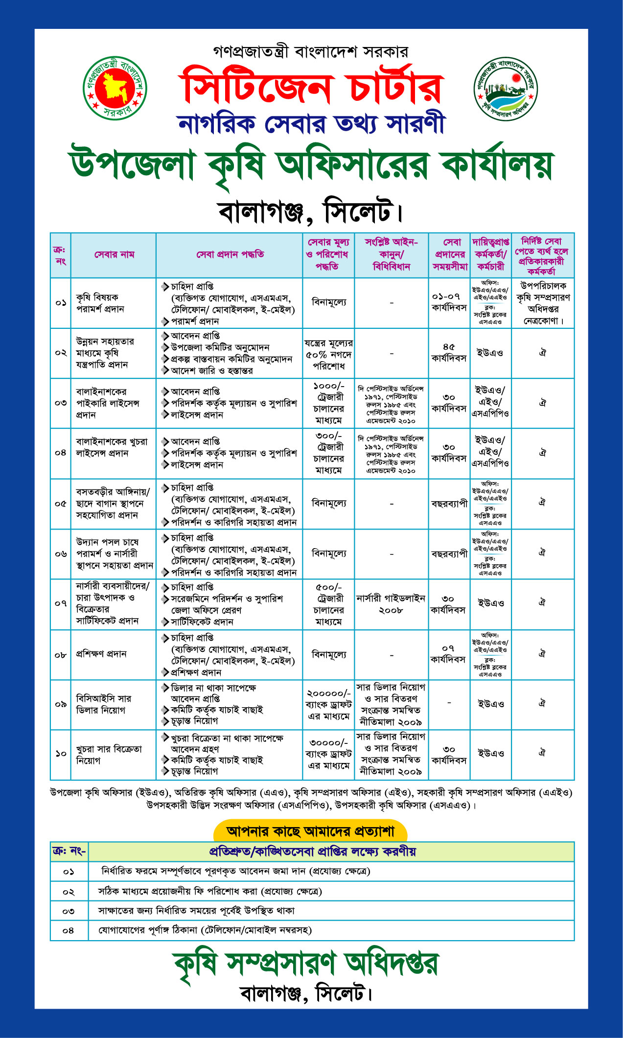 ১। ফসল উৎপাদন সংক্রান্ত যাবতীয় প্রযুক্তিগত সহয়তা (পরামর্শ) ১(এক) দিনের মধ্যে প্রদান করা হয়।